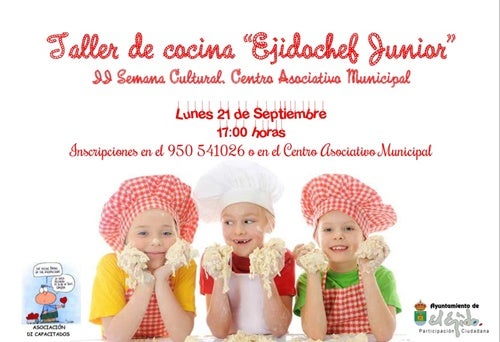 Según se desglosa en la Web municipal, a través de su área de Participación, habrá cuatro propuestas principales. La primera de ellas será el taller de cocina 'Ejidochef Junior'. Una iniciativa que organiza la Asociación Activa Tu Ocio y Di Capacitados en colaboración con el Ayuntamiento, y que pretende buscar al mejor chef junior del municipio. La actividad arrancará a las 17 horas el 21 de septiembre. Seguidamente, a las 18.30 horas habrá un taller de biomúsica, a cargo de la coach María Gutiérrez.