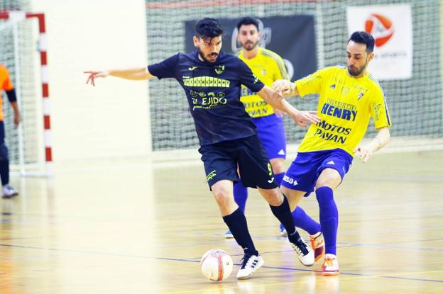 Triunfo por 4-5 del primer equipo masculino de fútbol sala del Club Deportivo El Ejido en el partido que disputó en la pista del ... pabellón malagueño 'Tiro de Pichón' ante el Atlético Carranque.