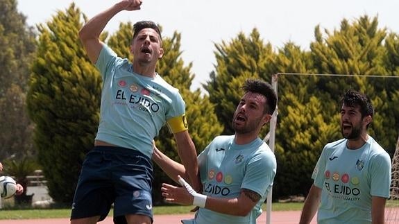Ya estaba desatado el poder atacante celeste y el propio Espinar por poco hizo el primero en el balón balón colgado desde la esquina. Tras varios rechaces, y cuando se cantaba el tanto en la grada, sacó bajo palos Jagoba. Había pasado sólo un cuarto de hora y el partido estaba maduro. Javilillo rompió, Darío Guti la puso al carril del centro y Alfonso corrió, mostrando la conexión temible de los ejidenses. Antes del primero David Fernández puso un balón perpendicular que peinó Rubén Guti.
