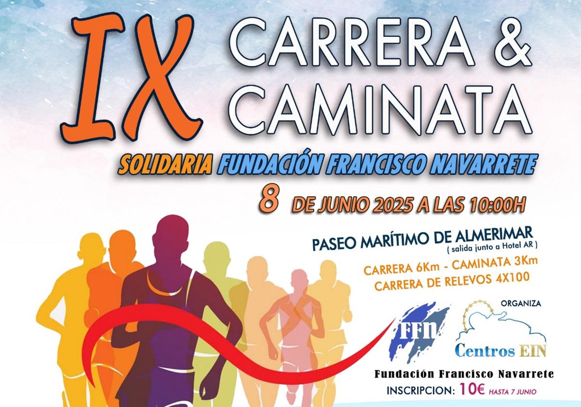 La prueba, organizada por la Fundación Francisco Navarrete y el colegio Divina Infantita con la colaboración del Instituto Municipal de Deportes del Ayuntamiento de El Ejido, contará con Carrera de 6 kilómetros, Caminata de 3 kilómetros y Carrera de Relevos 4x100. Las inscripciones se pueden llevar a cabo en Deportes Blanes, Ocioland, Joyería Centroro y colegio Divina Infantita.