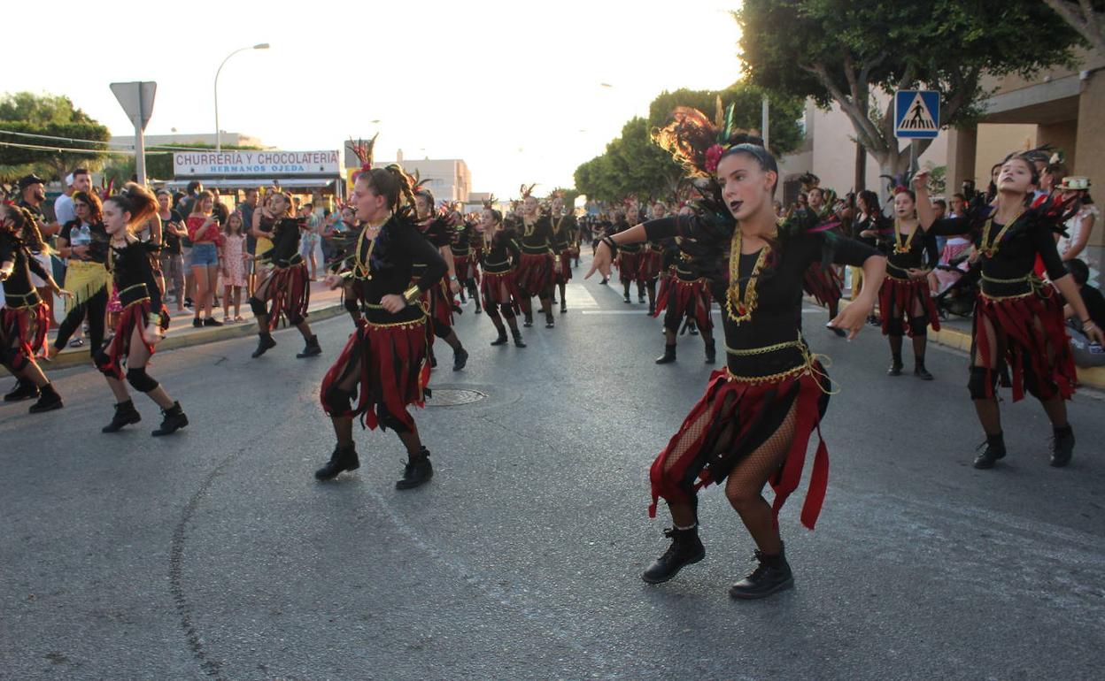 Esta actividad, que se desarrolla en el marco de la celebración de las fiestas en honor a San Agustín y la Virgen de La Consolación, reunió a un total de siete grupos de baile y formaciones musicales de todo el Poniente, que desplegaron todo su arte y creatividad a lo largo de un desfile que destacó por su animación y gran colorido.
