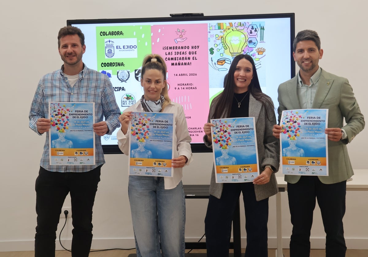 La Plaza Mayor de El Ejido y el espacio MurgiJoven albergarán el próximo 14 de abril de 09.00 horas a 14.00 horas la ... primera Feria de Emprendimiento de El Ejido. En esta iniciativa, que tiene como objetivo dar a conocer el trabajo que realiza el alumnado de distintos centros educativos en materia de emprendimiento, participan 12 institutos y colegios de la provincia: El Ejido, La Mojonera, Vícar, Roquetas de Mar, Baza, Vélez-Rubio y Olula del Río.