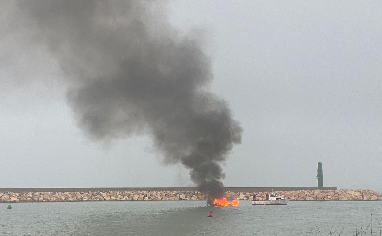 Arde una motora que surtía de gasolina a barcos con «fines delictivos» frente al Puerto de Almerimar
