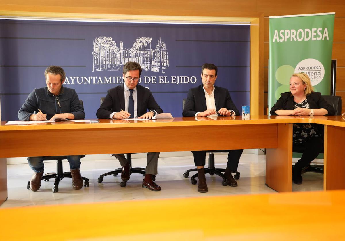 Un grupo de usuarios de la Asociación en Favor de las Personas con Discapacidad Intelectual del Suroeste de Almería (ASPRODESA) realizará prácticas formativas no laborales ... en el Ayuntamiento de El Ejido en virtud del convenio firmado por el alcalde, Francisco Góngora; el presidente de la asociación, Francisco Mateo; y el representante en Andalucía Oriental de la Fundación Mapfre, Fermín Mellado, la pasada semana y que tendrá una vigencia de dos años.