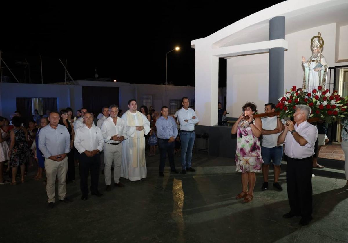 La Santa Misa, oficiada por el párroco Antonio Agustín Joya, y celebrada en la plaza frente al antiguo colegio público contó con la presencia del vicepresidente de la Diputación de Almería, Ángel Escobar; el presidente de la Junta Local de Santa María del Águila, Jerónimo Ibáñez; el concejal de Mantenimiento y Servicios de El Ejido, Bernardo Robles; y la presidenta de la Asociación Vecinal INESA, Pilar Fernández, además de numerosos fieles. Tras la eucaristía, la imagen procesionó por las calles de este barrio, portada a hombros por los feligreses.