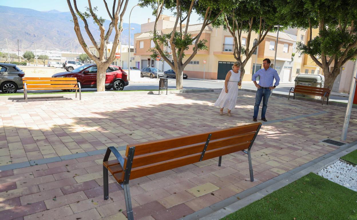 El alcalde, Francisco Góngora, comprobó precisamente el resultado de las obras que han transformado ese espacio urbano, pasando de una plaza en suelo de tierra y sin alumbrado a un área de paseo y descanso para los vecinos, pavimentada y bien iluminada.