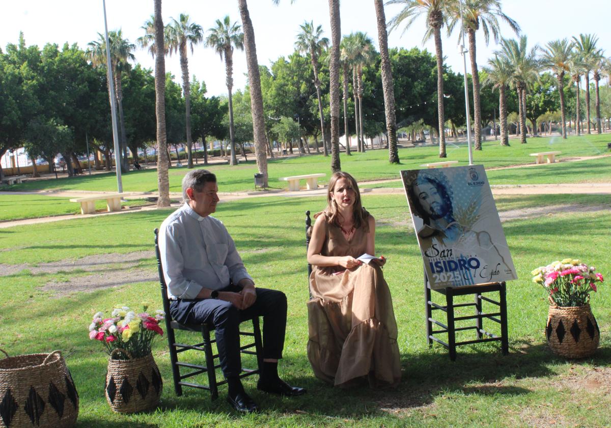 La concejal de Cultura, Elena Gómez, y el párroco de la Iglesia de San Isidro Labrador, Don Mariano Delgado, han presentado en el Parque Municipal todos los detalles del programa festivo.