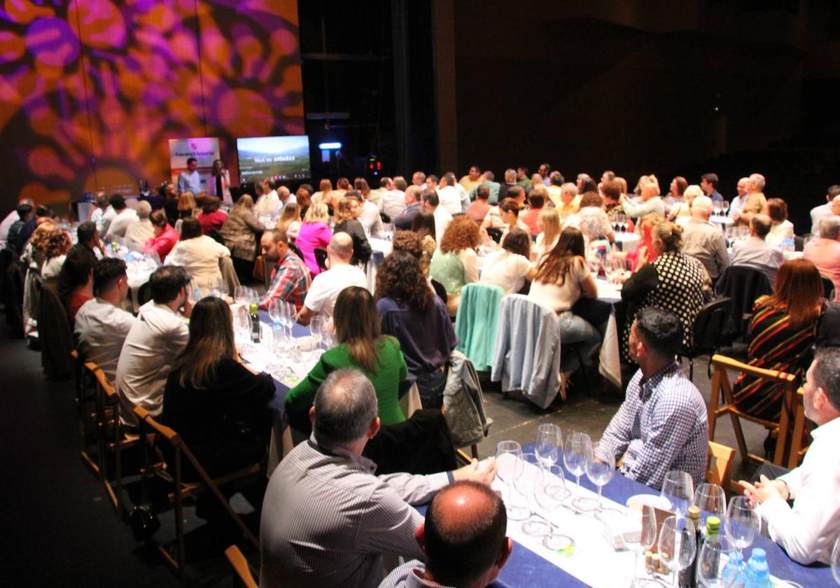 La caja escénica del Teatro Auditorio de El Ejido acogió anoche la tradicional Cata de Vinos de San Marcos. Una cita que contó con la asistencia de 120 personas, llenando de aromas y sabores el escenario del Auditorio.