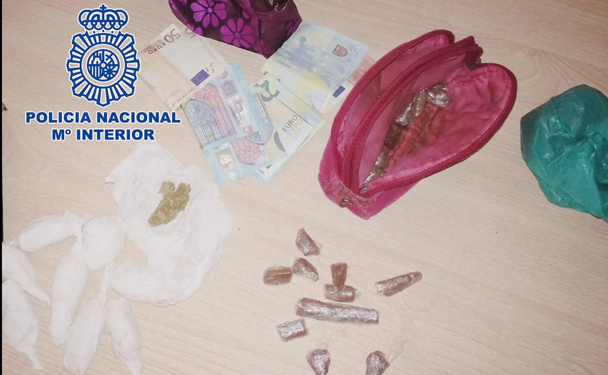 En ese momento los agentes proceden a la identificación de esta mujer, a la que se le encuentran entre sus pertenencias 320 euros en billetes fraccionados de 50 euros y 10 euros, tres bolsitas de plástico con cocaína y una bolsita conteniendo hachís.