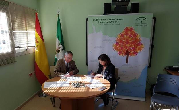 Así, la directora gerente del Distrito Sanitario Poniente, Juana Montoya, y el presidente de la AECC en Almería, Francisco Balcázar, firmaron este acuerdo en el marco de una jornada donde también se llevó a cabo la exposición de algunos programas preventivos que actualmente se están desarrollando en el Distrito Poniente. Entre ellos, destacaron el de diagnóstico precoz de cáncer de mama, el cribado de cáncer de colon y el de cáncer de cérvix, así como el trabajo de coordinación que a nivel provincial se está realizando en el Plan Integral Operativo de atención a personas con problemas oncológicos.