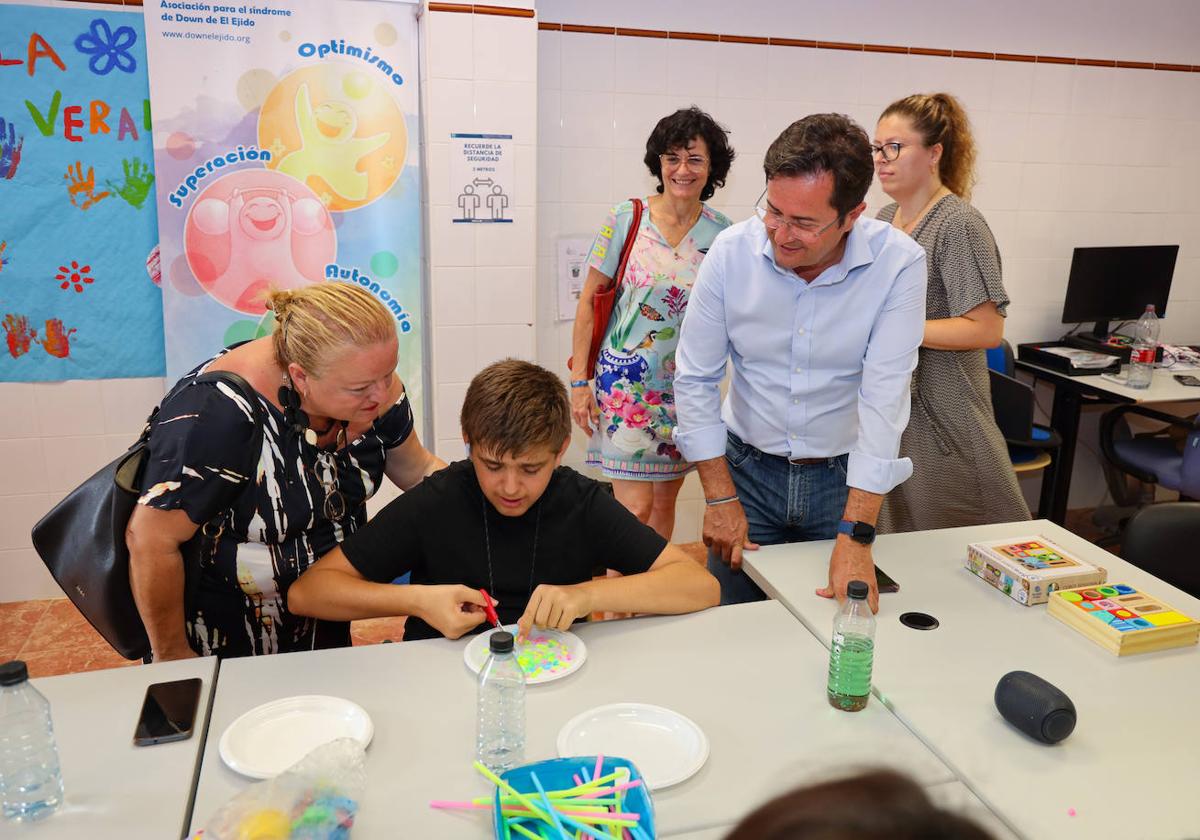 «El trabajo que realiza la asociación Down El Ejido es encomiable, vital para mejorar la calidad de vida de todos sus usuarios y su capacidad de integración e inserción laboral», destacó Francisco Góngora durante la visita a la escuela de verano, al tiempo que valoró el trabajo individualizado que realizan con cada usuario, una «metodología de trabajo centrada en la persona y que respeta en todo momento las características, motivaciones e intereses de todos los menores».