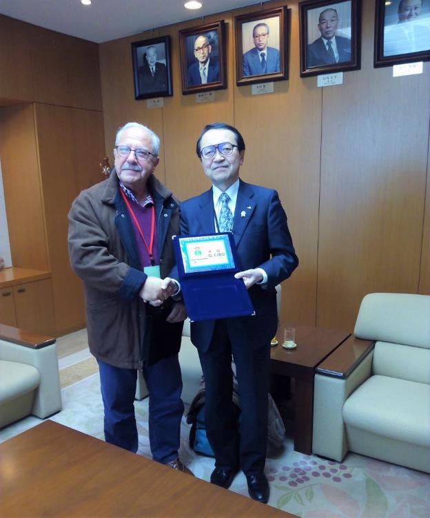 Tras la finalización de las jornadas, Antonio Escobar, junto al organizador de las jornadas, se trasladó hasta la cooperativa patrocinadora del evento 'Zen-Noh' donde fue recibido por su vicepresidente, el señor Kubo, quien recibió también una distinción por parte del Ayuntamiento en reciprocidad por el reconocimiento a la labor de los agricultores ejidenses.