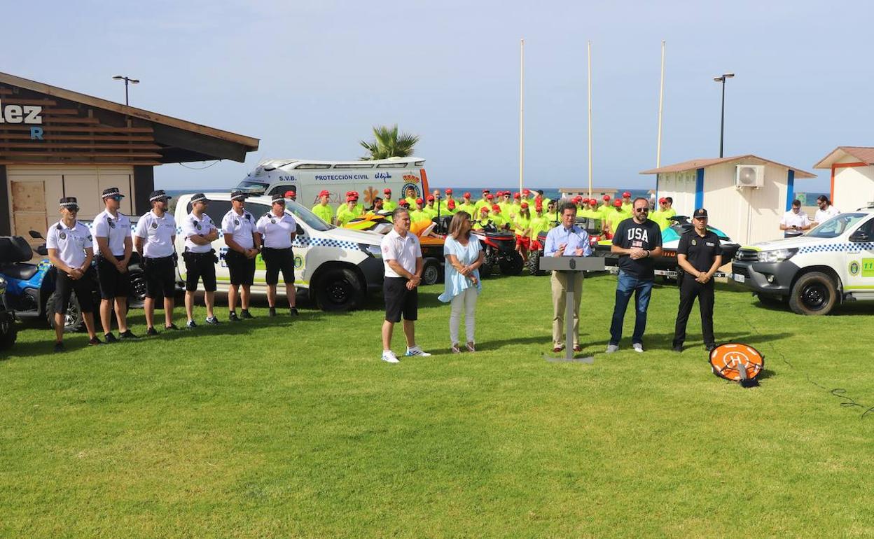 De igual forma, la flota de vehículos en playas dispondrá de una ambulancia, tres embarcaciones de auxilio, cuatro quads del servicio de salvamento y socorrismo, dos más de Policía Local, un vehículo todo terreno de Protección Civil, dos vehículos 4x4 de Policía Local y un vehículo patrullero con mampara de seguridad.