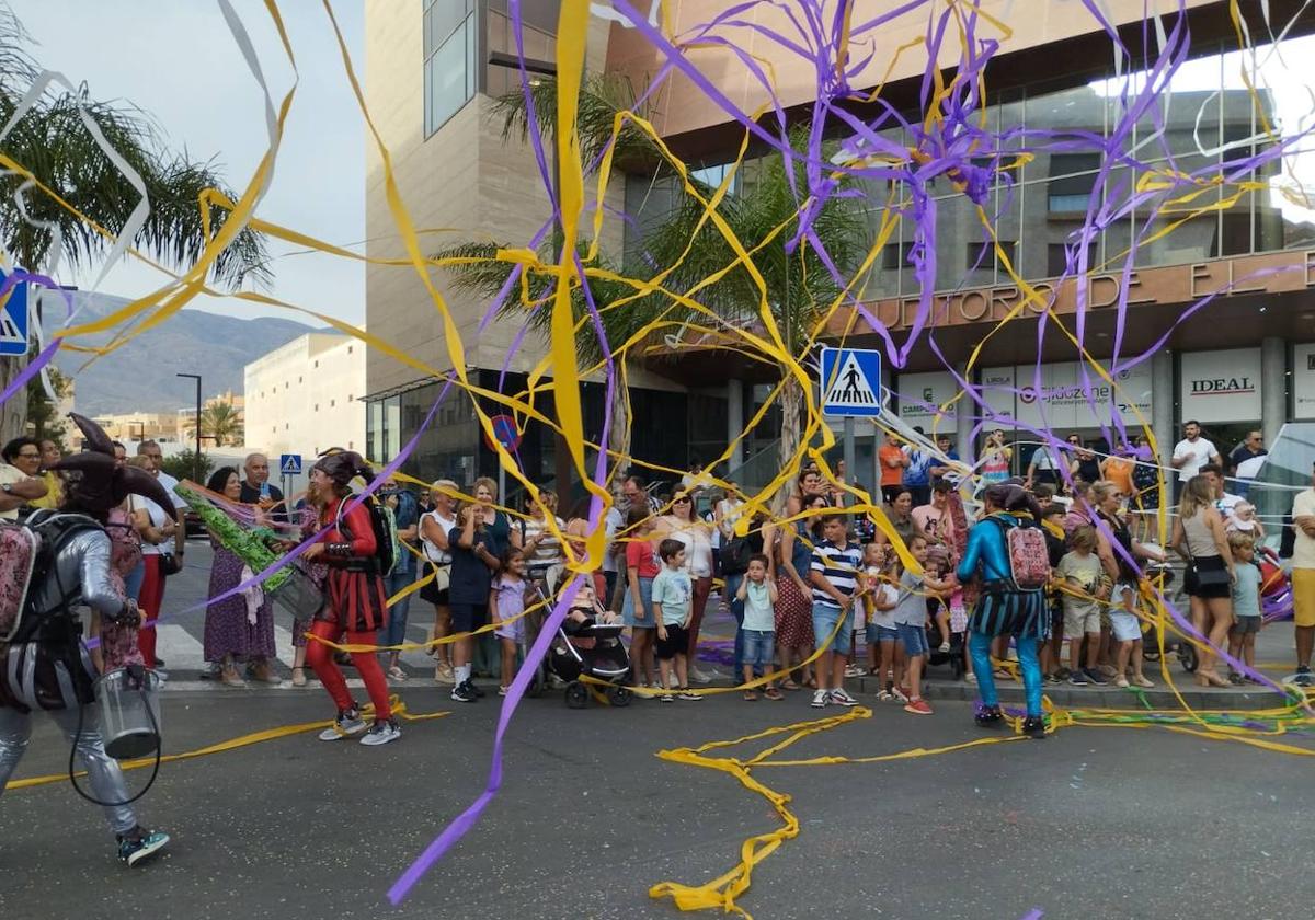 Por su parte, Brotons, que participó por primera vez en la Batalla de Las Flores de El Ejido, mostró su espectáculo colorido e interactivo 'Lanzailusiones'.