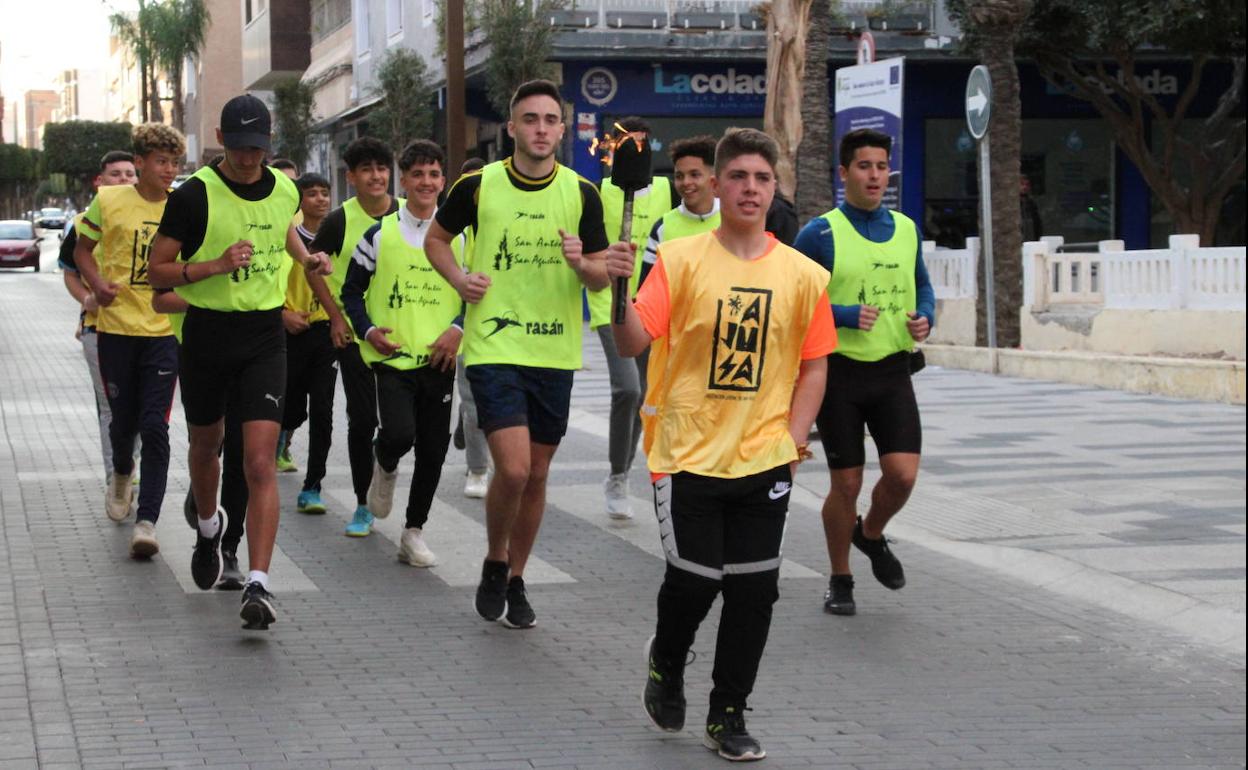 Caía ya la noche cuando el vicepresidente de la Diputación Provincial de Almería, Ángel Escobar, encendía la antorcha en la plaza de la Biblioteca para dar la salida a un recorrido que contó con medio centenar de corredores de todas las edades. Abuelos, padres e hijos, se fueron dando el relevo de dos en dos, en parejas formadas por un adulto y un menor, por las calles de este núcleo, durante siete kilómetros, para llegar en torno a las nueve y media a encender la hoguera ubicada frente al Centro de Usos Múltiples de este núcleo urbano, donde de nuevo sería Ángel Escobar, el encargado de prenderla.