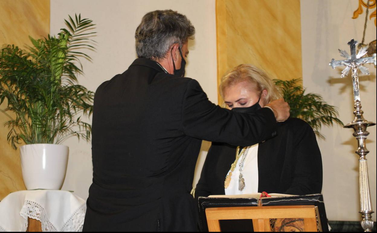 Mari Carmen Maldonado recibió la medalla de Hermana Mayor del hasta ahora Hermano Mayor Francisco Fernández y juró su cargo en un emotivo acto religioso