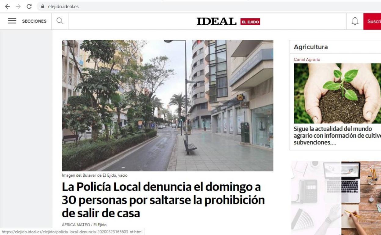 IDEAL, consciente de la importancia que la información veraz tiene en estos días, ha doblado sus esfuerzos para que todos los ejidenses reciban información ... local de lo que está pasando en su municipio. Por eso, refuerza dentro de la web de IDEAL un portal especial dedicado a El Ejido, www.elejido.ideal.es, donde se actualizará la información cada día, con especial atención a cómo afecta el coronavirus a la población ejidense y a su tejido productivo.