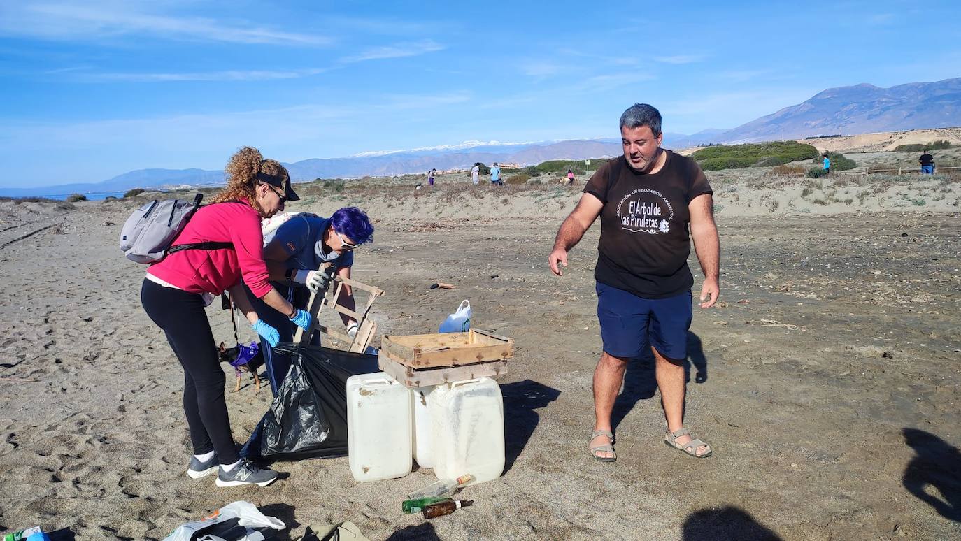 «Muchas veces echamos culpa a las Administraciones o a las grandes empresas de que no limpian, y es verdad que hay que hacerlo, pero también hay que exigirle mucho a la ciudadanía, para que cada uno sea responsable de su basura y cada vez que vamos a la playa, luego recojamos lo que hemos llevado, y de esa manera habrá mucho menos que limpiar y crearemos menos problemas», incidió Moisés Palmero, quien explicó que se eligió la playa de Punta Entinas «porque las máquinas no llegan hasta aquí y sabemos que esta es una de las playas que, por desgracia, está más sucia».