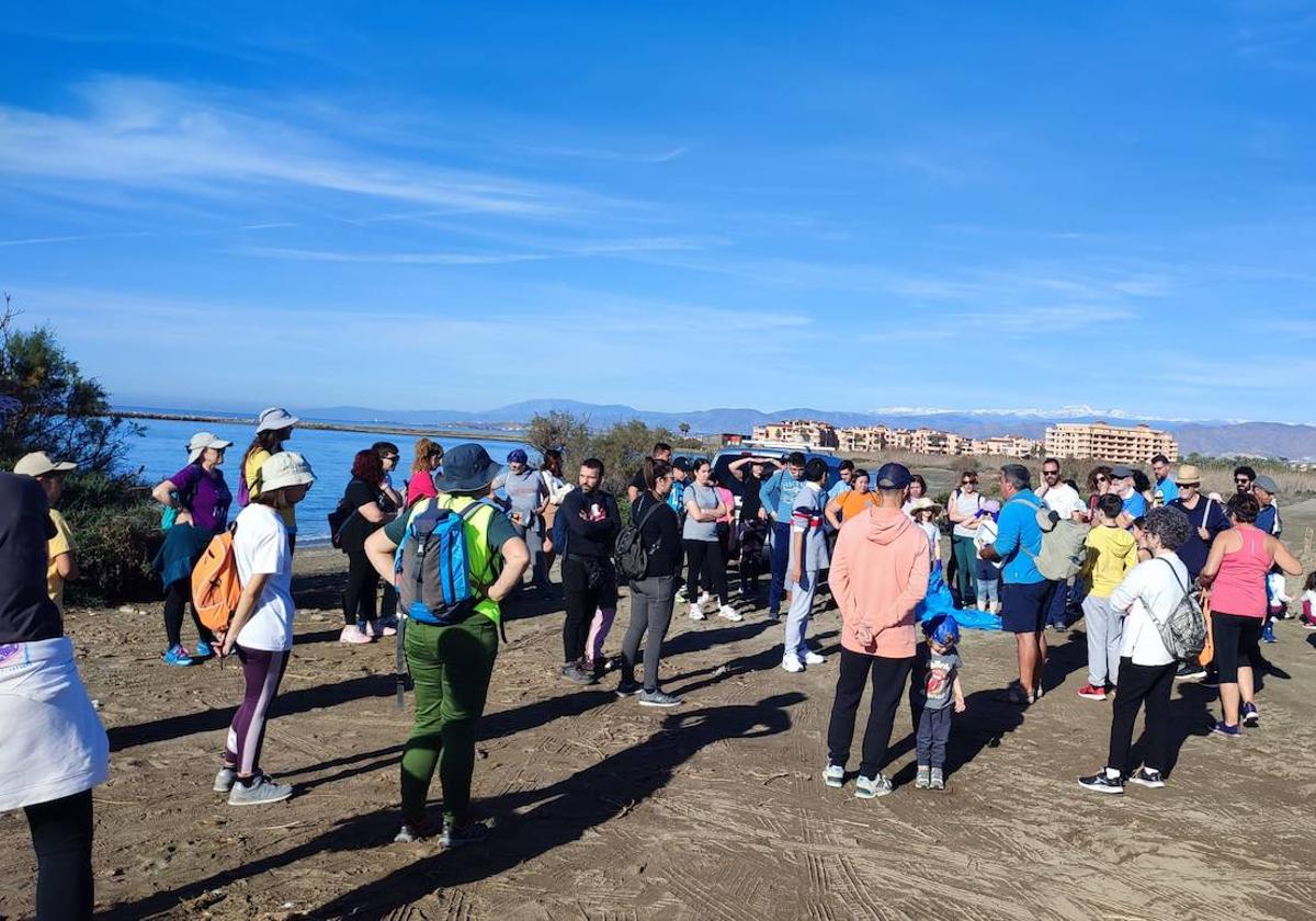 Tras ello, pequeños y mayores fueron adentrándose poco a poco en el Paraje Natural hasta llegar a la playa frontera entre la Reserva Natural de Punta Entinas y las Praderas de Posidonia del mar de Alborán, una zona donde ya no se puede acceder con maquinaria para su limpieza. Sin embargo, por el camino, los participantes ya pudieron ir recogiendo la basura dispersa por la playa, los caminos y entre la vegetación existente, claro ejemplo de la inconsciencia e irresponsabilidad del ser humano y del pobre mensaje para las futuras generaciones.