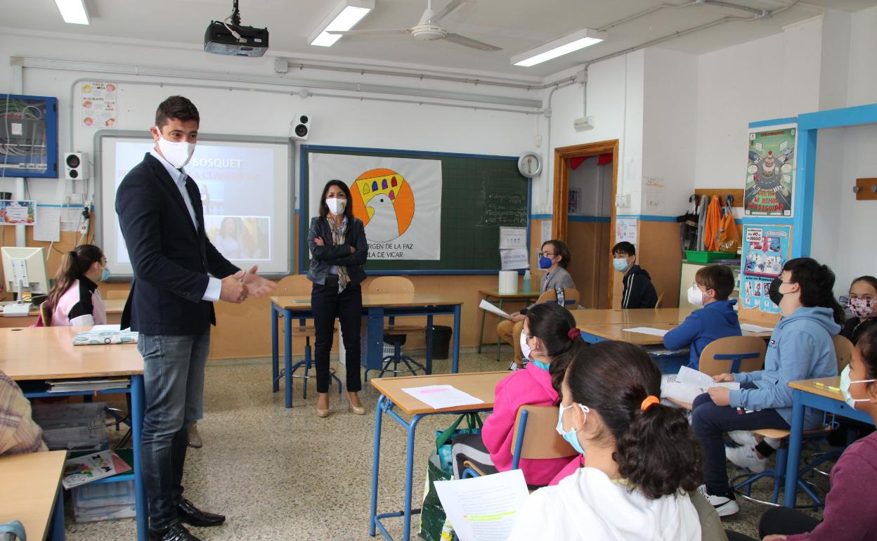 Así, las aulas del CEIPVirgen de la Paz de Vícar se convirtieron en salas de prensa improvisadas para acoger una de las actividades que los alumnos están desarrollando dentro del programa de Radio, Prensa y Televisión La Paz, enmarcado dentro del Plan Impulsa 2 de la consejería de Educación de la Junta de Andalucía y a través del que el centro educativo trata de mejorar la expresión oral y escrita de sus alumnos de quinto y sexto.