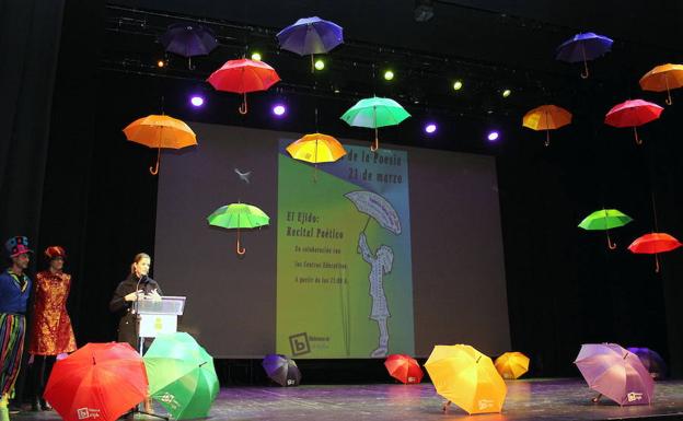 Unos 500 escolares de los centros educativos Divina Infantita, Tierno Galván y Ciavieja, además de los alumnos del Aula de Educación Especial del IESFuentenueva y ... de la asociación Síndrome de Down participaron en la mañana de ayer en un evento organizado por la Biblioteca Central de El Ejido, en el Auditorio, con el que conmemorar el Día Internacional de la Poesía.