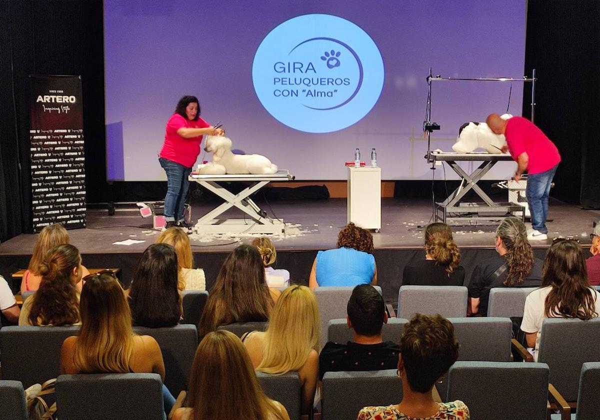 La Sala B del Auditorio de El Ejido se convirtió en la mañana de ayer en escenario del inicio de laII edición de la gira ' ... Peluqueros con Alma'. Un seminario de peluquería canina, organizado por la Academia Internacional Artero que contó ayer con la presencia de algunos de los peluqueros caninos más importantes del panorama nacional, quienes llevaron a cabo demostraciones de peluquería especializada en las razas Cocker, Bichón Frisé y Caniche en estilos comerciales y fantasía.