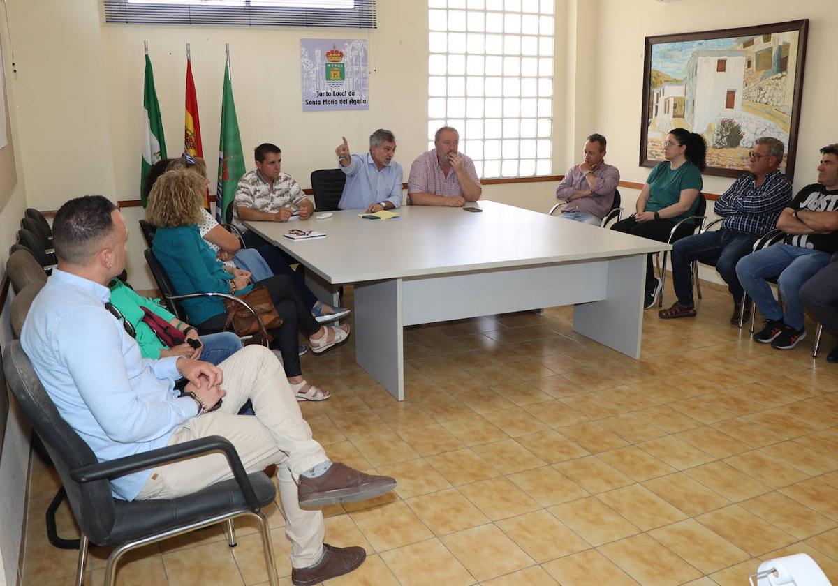 El portavoz municipal y concejal de Hacienda y Contratación, José Francisco Rivera; el concejal del equipo de Gobierno, Ángel Escobar; y el presidente de la Junta Local, Jerónimo Ibáñez, se han reunido con las asociaciones y colectivos de Santa María del Águila, para explicarles la propuesta de proyecto y recoger sus ideas y aportaciones.