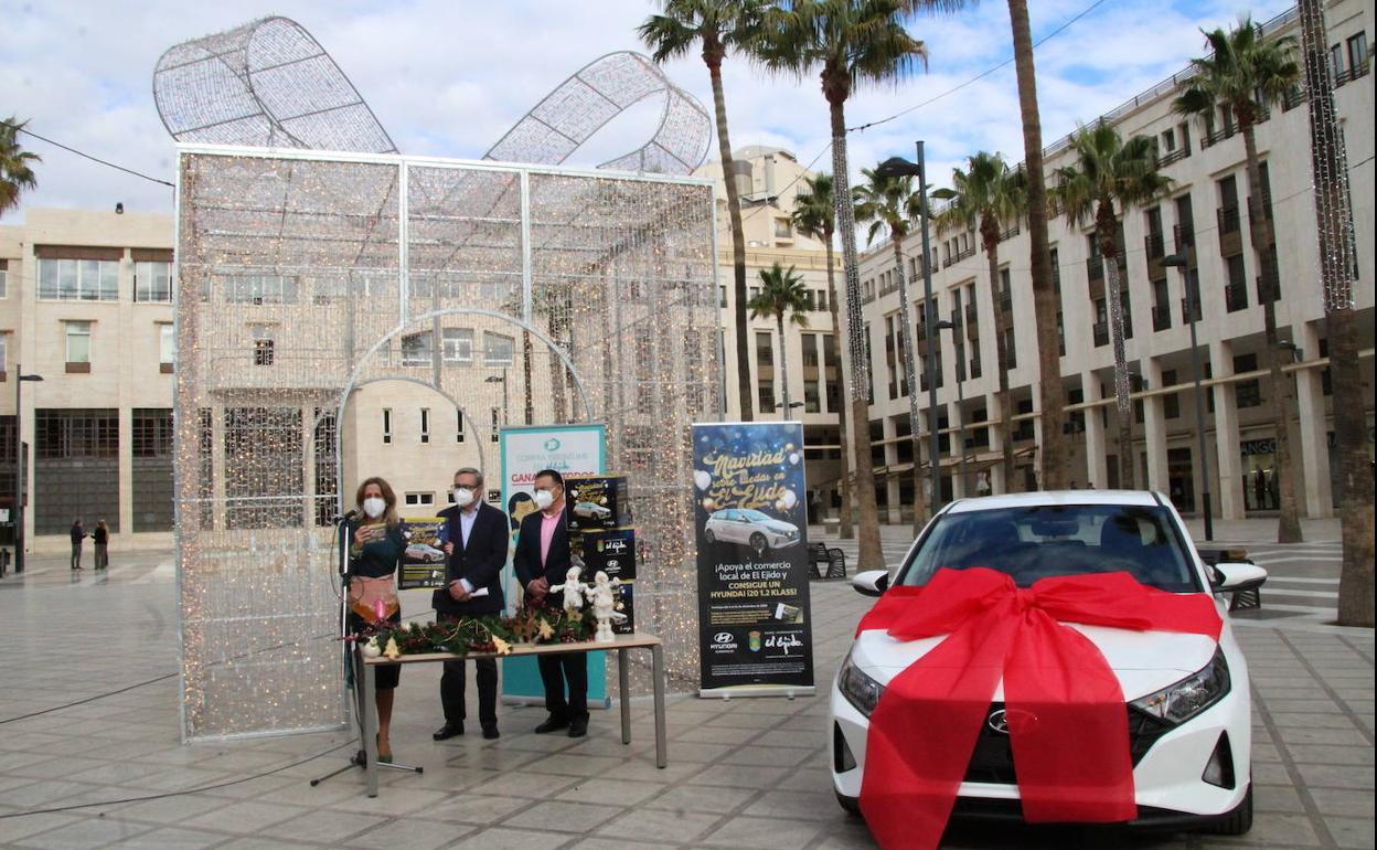 Así, la concejala del ramo, Montserrat Cervantes, presentó ayer en la Playa Mayor 'Navidad sobre ruedas en El Ejido' con la que aquellas personas que realicen sus compras en alguno de los establecimientos adheridos a la campaña desde hoy y hasta el 26 de diciembre podrán optar a un premio final de un coche.
