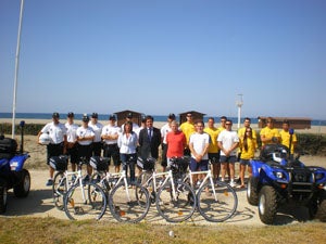 Y es que como señalaba el alcalde, «este servicio estará realizado por dos agentes que desarrollarán su labor en todo el litoral en bicicleta lo que va a incrementar el servicio de vigilancia y socorrismo de playas». Porque como concretó Góngora, además de esta patrulla específica de playas, y los ocho agentes de la Policía Local de El Ejido que velarán por la seguridad de la costa ejidense, se le añade un mayor número de socorristas. «A los 11 socorristas que ya en estos días están velando por la seguridad de bañistas y usuarios de las playas se sumarán otros 21, siendo en total la plantilla de 32 socorristas, que estarán trabajando para el servicio de primeros auxilios, socorrismo y vigilancia». En suma, como apuntó, «este año se ha valorado la formación, preparación y trato con personas con algún tipo de discapacidad, así como titulaciones específicas en manejo de embarcaciones y otro tipo de transportes que puedan requerir el servicio de salvamento».