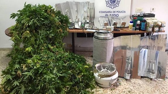 Asimismo localizaron extractores, filtros de extracción del aire, sistema de riego, máquinas de aire acondicionado, ventiladores, lámparas y productos de cultivo y crecimiento.