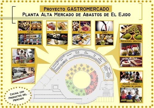 El proyecto para la tercera planta de la Plaza de Abastos ejidense pretendía dinamizar el centro urbano y ofertar una gastronomía de calidad para todos los públicos con la realización de distintas actividades complementarias para revalorizar el entorno urbano del centro de la ciudad.