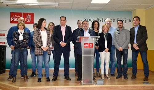 La comparecencia contó también con la presencia del secretario general del PSOE de El Ejido, Tomás Elorrieta, de Balerma, Miguel Suárez; Balanegra, Erika Suero; y La Mojonera, Francisco Ibáñez. Los ediles ejidenses Juan José Callejón, Juan Godoy y María del Mar Suero, así como sus homólogos en otros puntos del Poniente.