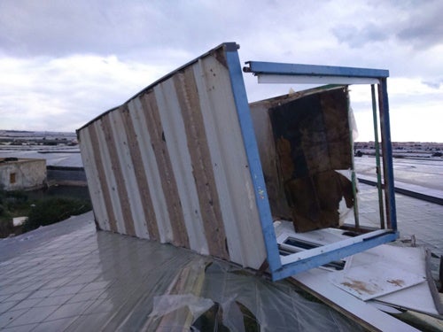 No daban crédito. Durante toda la jornada de ayer, imágenes como esta circularon por diferentes perfiles y grupos de Facebook como El Ejido Última Hora ... y Ejido a debate, pero pocos vecinos dieron veracidad a este tipo de fotografías por considerarlas a todas luces un "fotomontaje". Pero nada más lejos de la realidad, uno de los siete hombres encargados de bajar esta estructura del invernadero sobre el que acabó, José Bonet, relata a IDEAL que no sólo se trata de una imagen verdadera, sino que fue tomada sobre el propio invernadero justo antes de que esta caseta de obra "de unos 800 kilos a 1.000 kilos" fuera retirada.