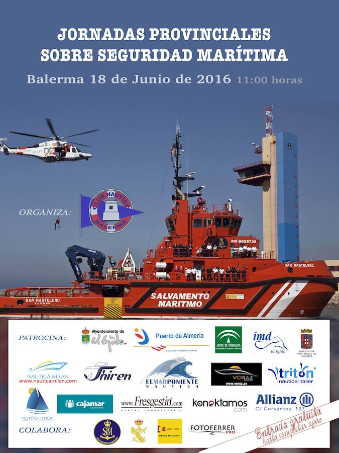 El delegado territorial de Cultura, Turismo y Deporte de la Junta de Andalucía, Alfredo Valdivia, presentó ayer unas Jornadas provinciales sobre Seguridad Marítima, organizadas por ... el Club Naútico de Balerma, inscrito en el Registro Andaluz de Entidades Deportivas de la Consejería de Turismo y Deporte, y que tendrán lugar este sábado, a partir de las 11 horas desde la sede del Club Náutico de Balerma.