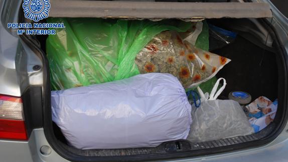 Una vez detenido, los agentes procedieron a realizar un registro del vehículo comprobando que en el maletero había cuatro bolsas de plástico de grandes dimensiones conteniendo en su interior cogollos de marihuana.