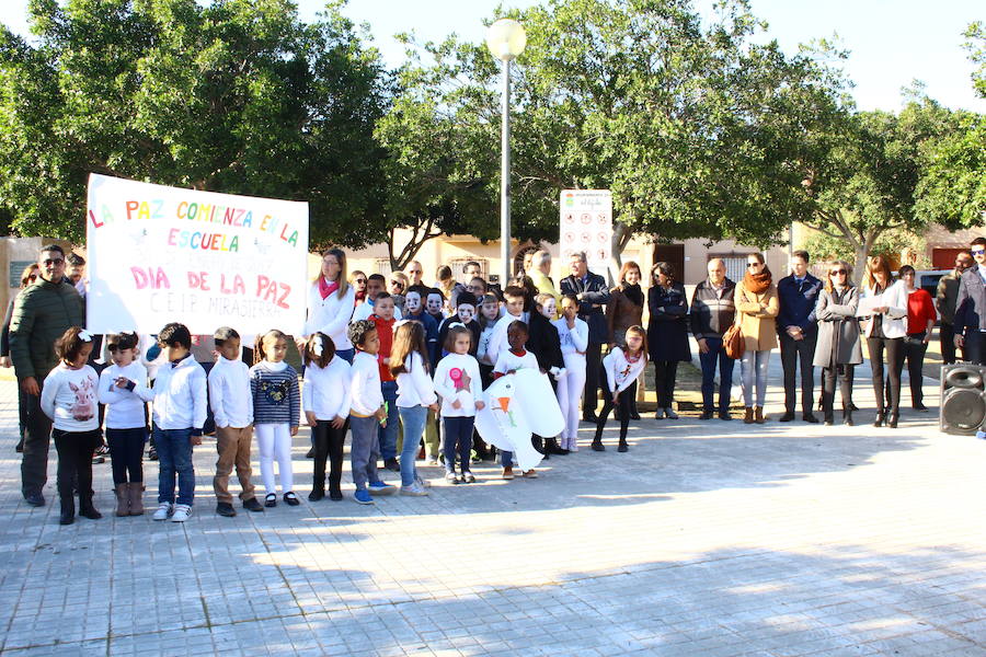 Los escolares, que portaron pancartas con diferentes dibujos y mensajes, pusieron de manifiesto la necesidad de promover la convivencia y reivindicar la paz a través de la unión de los distintos pueblos y colectivos. De este modo, también lo hicieron con la lectura de un manifiesto, con actuaciones musicales y la suelta de globos simbólica con mensajes pacíficos.