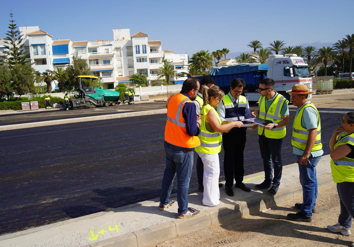 Junto a él, el concejal de Obras Públicas, David Fernández y el presidente de la Junta Local de Almerimar, Inocencio Gabriel Manzano, junto a técnicos municipales.