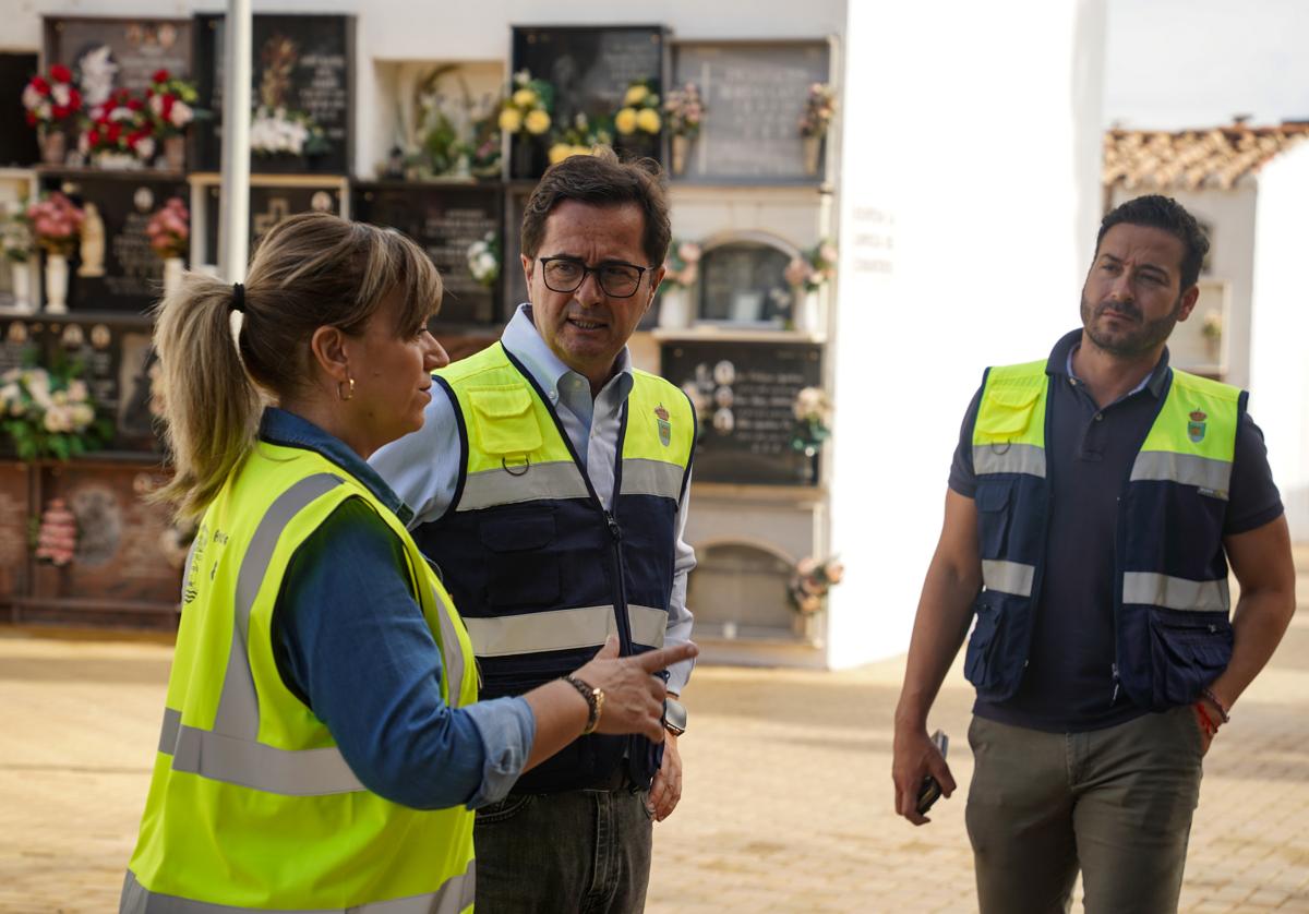El alcalde, Francisco Góngora, junto al edil responsable del área, David Fernández, y técnicos municipales, ha visitado el cementerio principal de El Ejido para supervisar las tareas que se están realizando, y que también se están desarrollando tanto en el interior como en el exterior de los camposantos de Balerma y Las Norias-San Agustín.