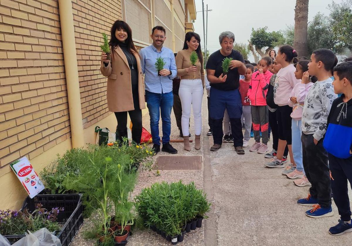 La retirada de los árboles dejó la imagen de un patio seco y poco atractivo. «Comenzamos a darle vueltas y se nos ocurrió que podíamos hacer una reforestación con plantas para dejarlo más atractivo para el centro y para el alumnado», comenta Gómez Cano, quien añade que el siguiente paso fue «solicitar ayuda a las empresas de la zona para hacer un jardín botánico y poético. Una zona donde los niños en los recreos y clases pudieran echar sus ratos de lectura».