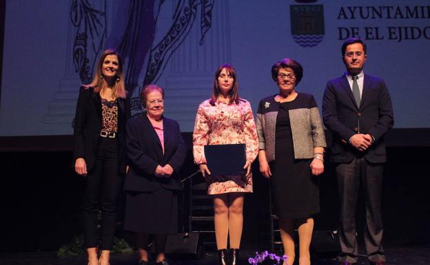 Posteriormente, fue el turno de Lola Prados, un ejemplo de constancia y superación. Pese a ser natural de Adra, está muy vinculada al municipio ejidense porque es la fundadora y actual presidenta de la Asociación de Daño Cerebral Vivir. Su lucha comenzó con su hijo, pero en la actualidad ayuda a muchas personas con una unidad de día para afectados en la que trabaja un gran equipo multidisciplinar de profesionales.