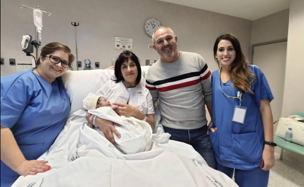 En Sevilla, en el Hospital Virgen de Valme, ha nacido una niña, Martina, a la 1. La recién nacida, con 3,230 kilogramos de peso, es el primer bebé de la provincia. Su alumbramiento ha sido por parte natural.