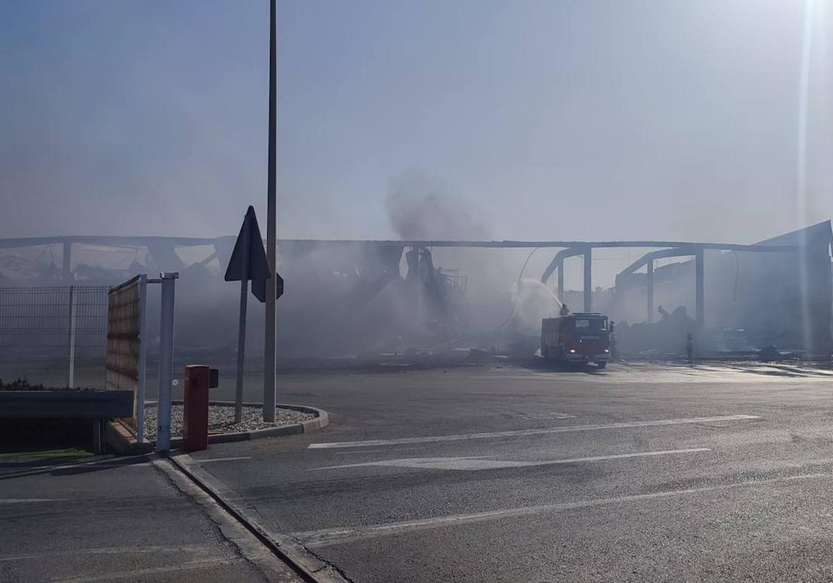 La nave de Mabe ha quedado calcinada tras las llamas que se originaron anoche a las nueve. Decenas de trabajadores y socios se han desplazado al lugar para comprobar el estado de la cooperativa hortofrutícola. Desde primera hora de este martes, el fuego ha quedado controlado pese a que la zona sigue acotada para evitar que se expanda y los bomberos están llevando a cabo labores de enfriamiento hasta que el fuego se apague por sí solo.