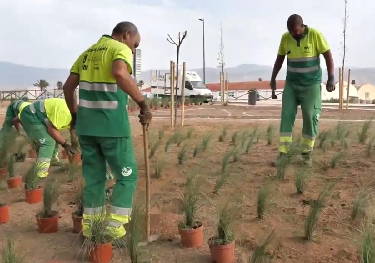 Roquetas de Mar continúa avanzando en el mantenimiento y embellecimiento de los espacios públicos, con labores de jardinería en distintas zonas del municipio costero.