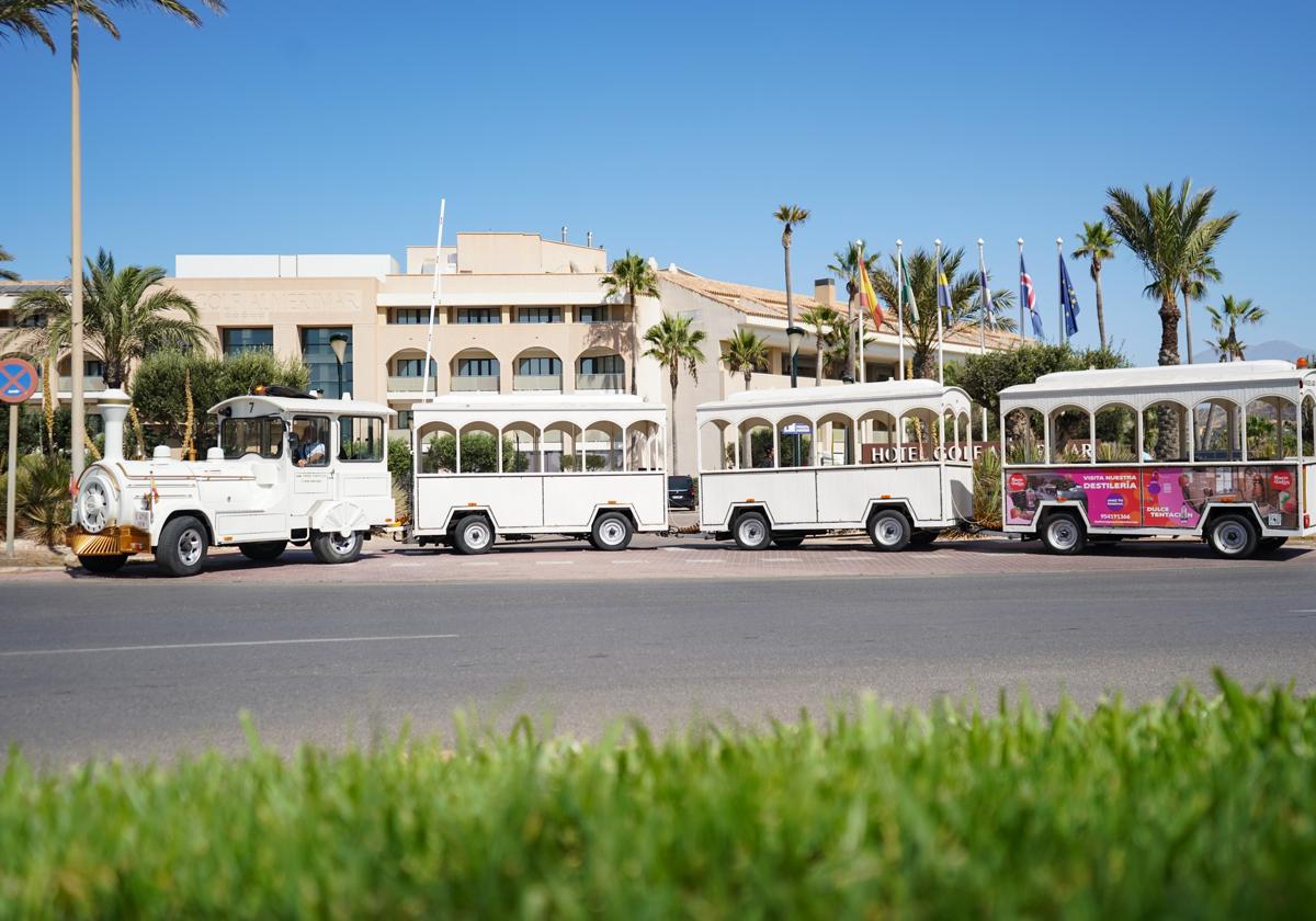 Un tren turístico recorre varios de los principales enclaves de Almerimar durante el verano