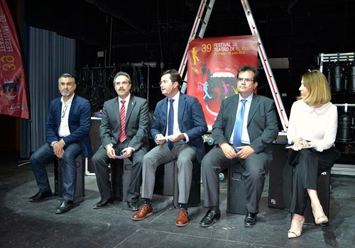 De este modo, y tras repartir cascos de protección a los periodistas, entraron a escena el alcalde, Francisco Góngora, la concejala de Cultura, Julia Ibáñez, el delegado territorial de Cultura, Alfredo Valdivia, el diputado provincial de Cultura, Antonio Jesús Rodríguez, y el coordinador del Festival, Diego Ruiz, quienes usaron unos altavoces como asientos y dieron comienzo a la presentación de la que será la 39 edición de esta gran fiesta de las artes escénicas, que se desarrollará en El Ejido del 20 de mayo al 18 de junio.