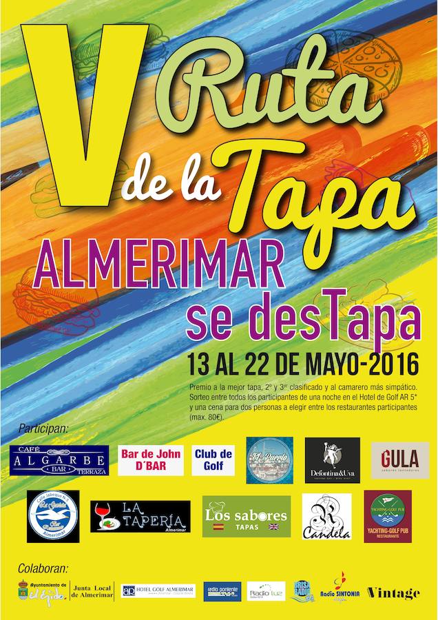 Bajo el lema Almerimar se desTapa, este núcleo costero de El Ejido acogerá, del 13 al 22 de mayo, la quinta edición de su particular ... Ruta de la Tapa. Una deliciosa cita con la gastronomía de la zona que ya se ha convertido en toda una tradición en esta población, y que organiza cada año el sector hostelero y de restauración, en colaboración con el Ayuntamiento de El Ejido y la Junta Local de Almerimar.