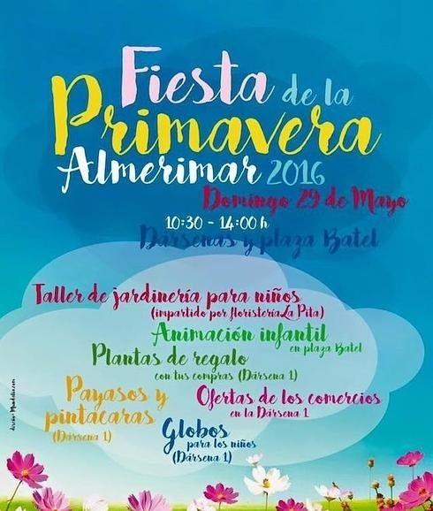 Que la primavera ya está aquí es más que una realidad, y para celebrarlo, el núcleo costero de Almerimar en El Ejido celebra este fin ... de semana, concretamente el domingo 29 de mayo, desde las dársenas del Puerto Deportivo y la Plaza Batel, su Fiesta de la Primavera. Una jornada que arrancará a las 10.30 horas y que se desarrollará hasta las 14 horas, para divertir a mayores y pequeños, con talleres de jardinería, platas de regalo, ofertas de los comercios de la zona, payasos y pintacaras, globos y animación infantil.