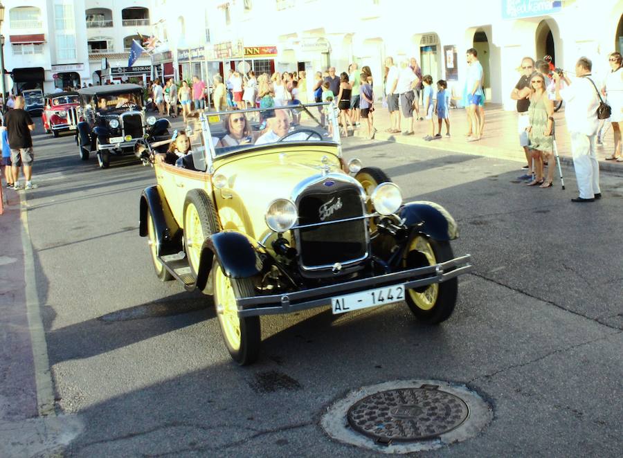 La caravana de vehículos clásicos llega a Almerimar por quinto año consecutivo. Y lo hace animada por el hecho de que esa afición que ha ido ganando adeptos con el paso de los años, ya que cada vez son más los que disfrutan de esta cita más que consolidada del verano ejidense.