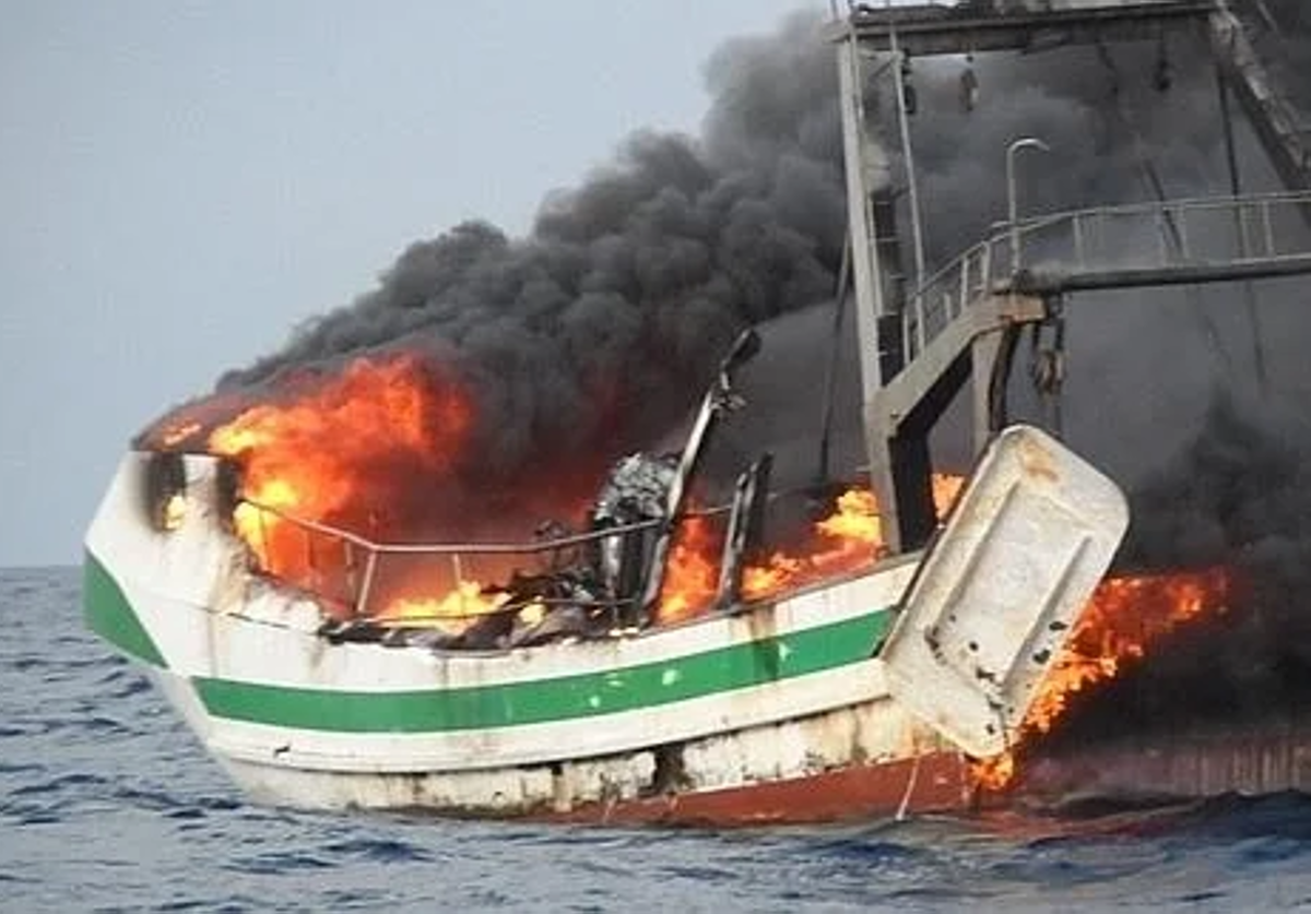 Rescatados tres tripulantes tras incendiarse y hundirse un pesquero cerca de Almerimar